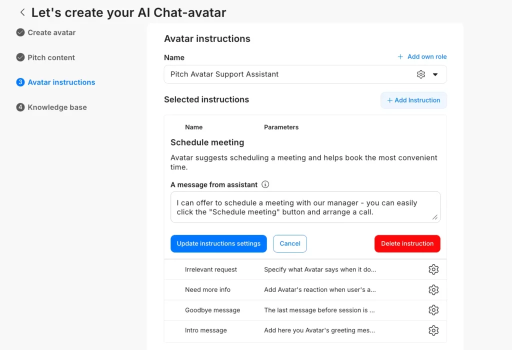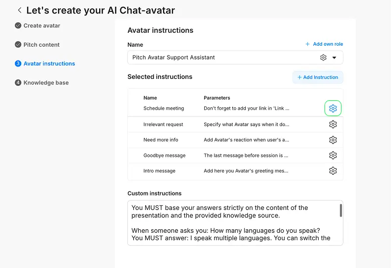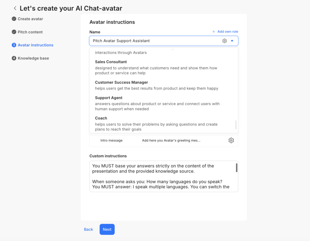 In addition, you can create your custom role. This allows you to set the avatar’s behavior and tone of communication to match your unique business goals and style.