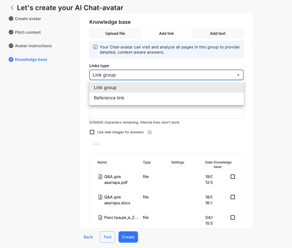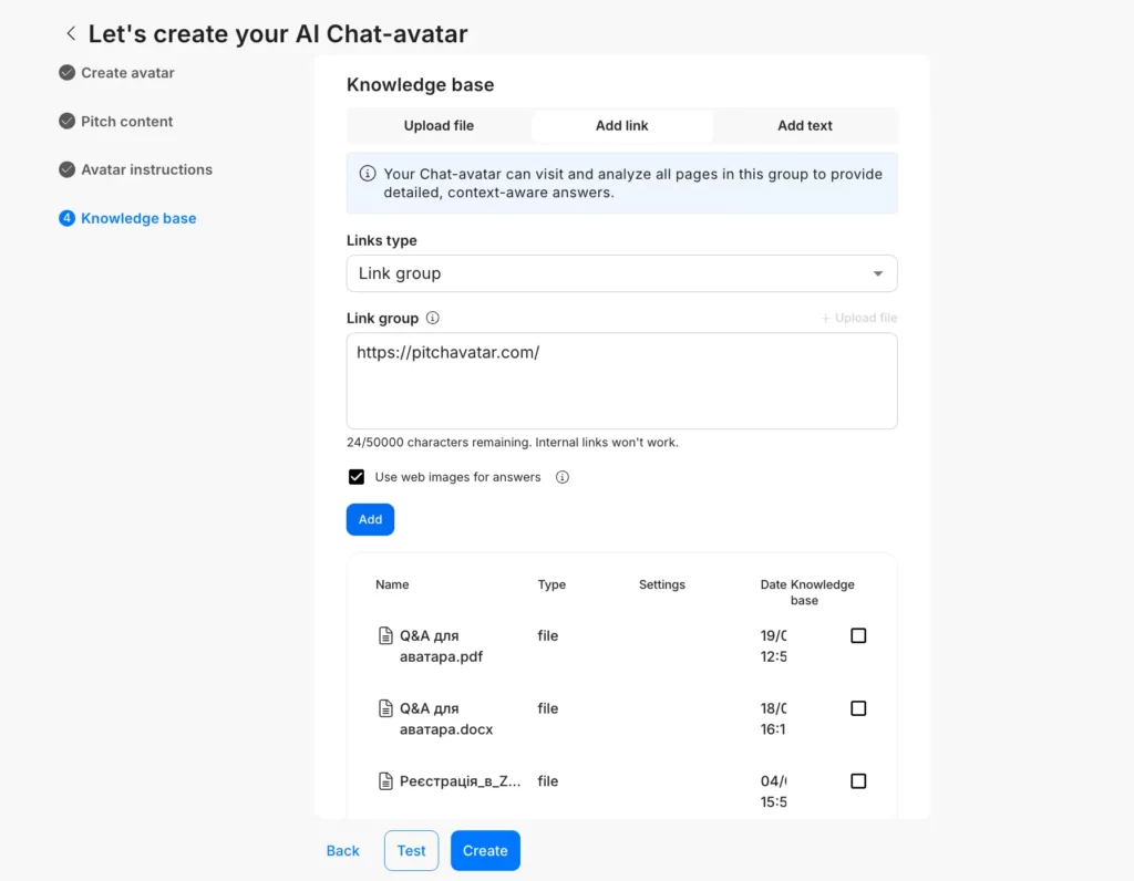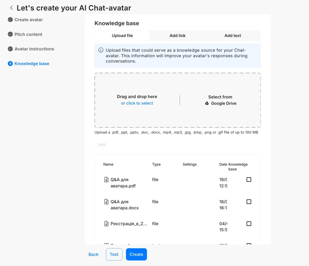 Your avatar will learn from everything you add and use this as a knowledge source to answer questions.