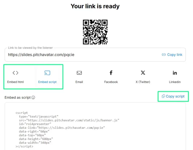 Once you’ve created your link, you can easily add the presentation to your website by copying the HTML code or embed script and pasting it into your website’s iframe.