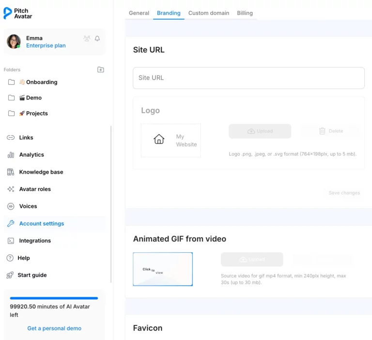 You can create a unique brand style for all your company presentations by adding your logo, favicon and customizing the header color to match your brand.