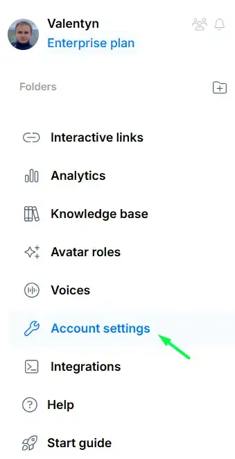 Войти в свой Pitch Avatar После перехода на панель управления перейдите в раздел Настройки аккаунта раздел в левой части страницы.